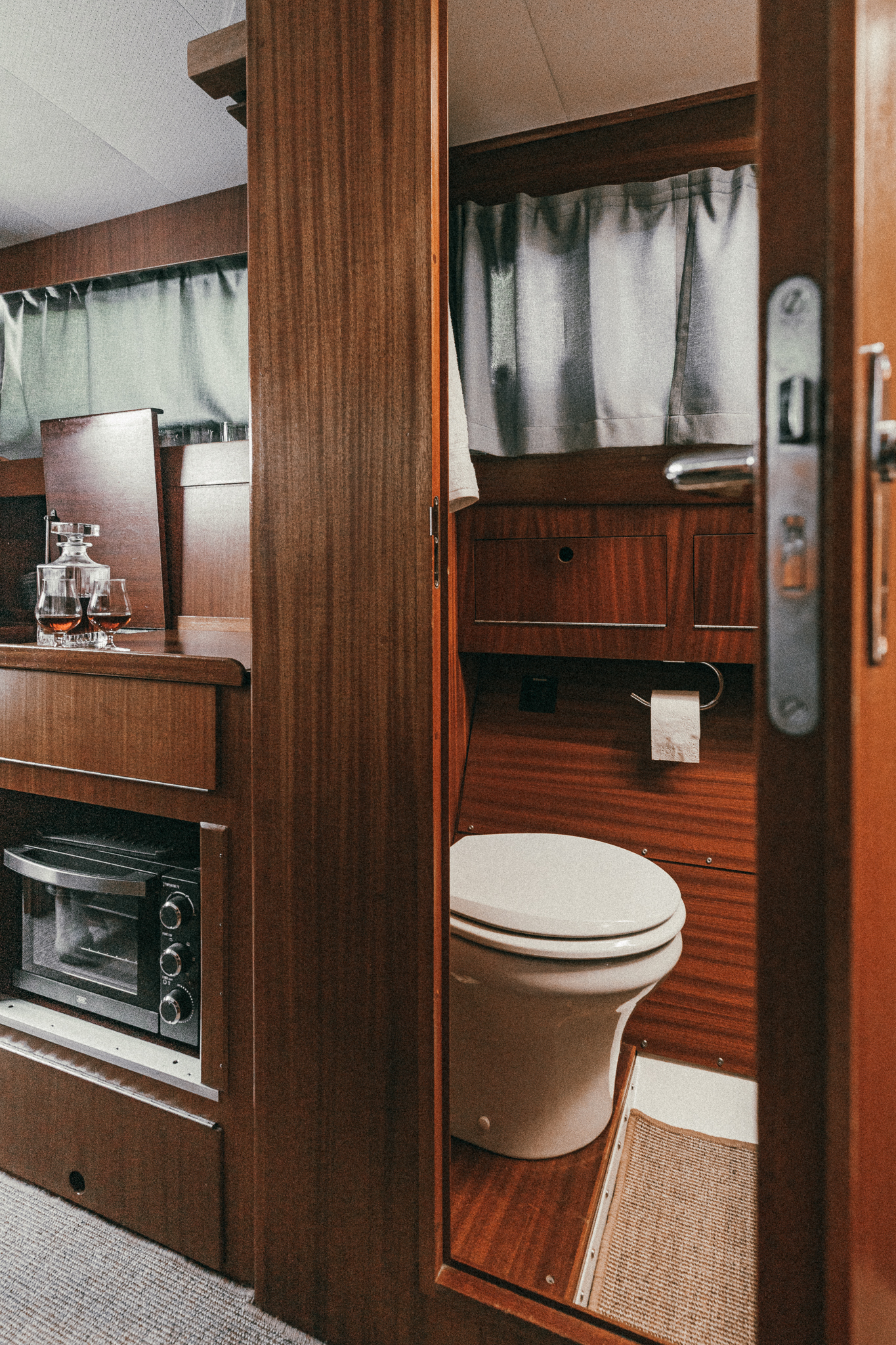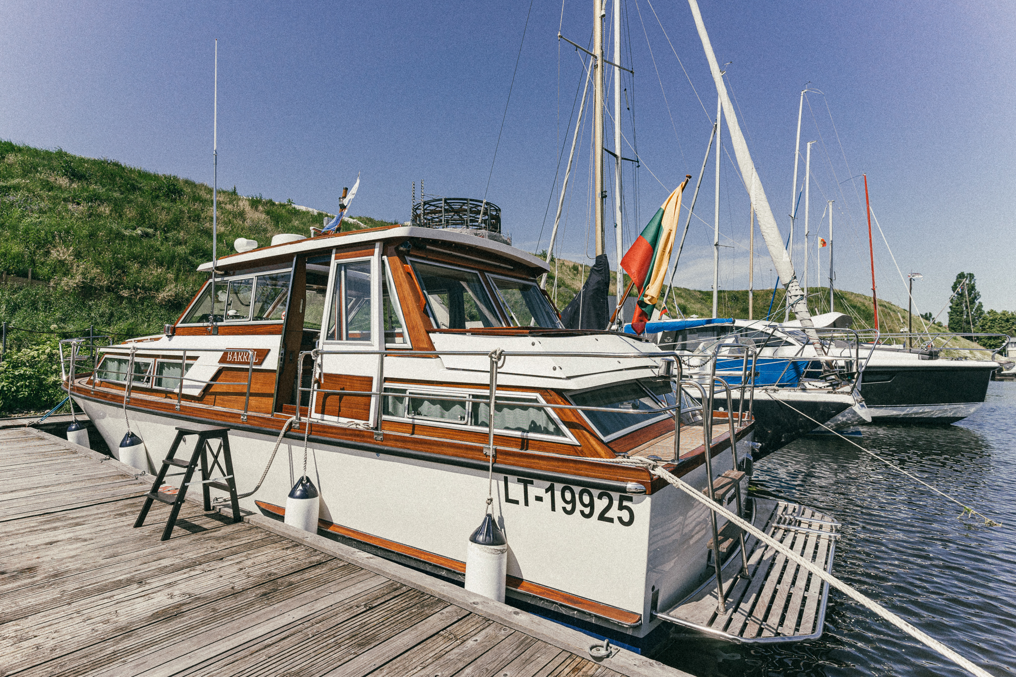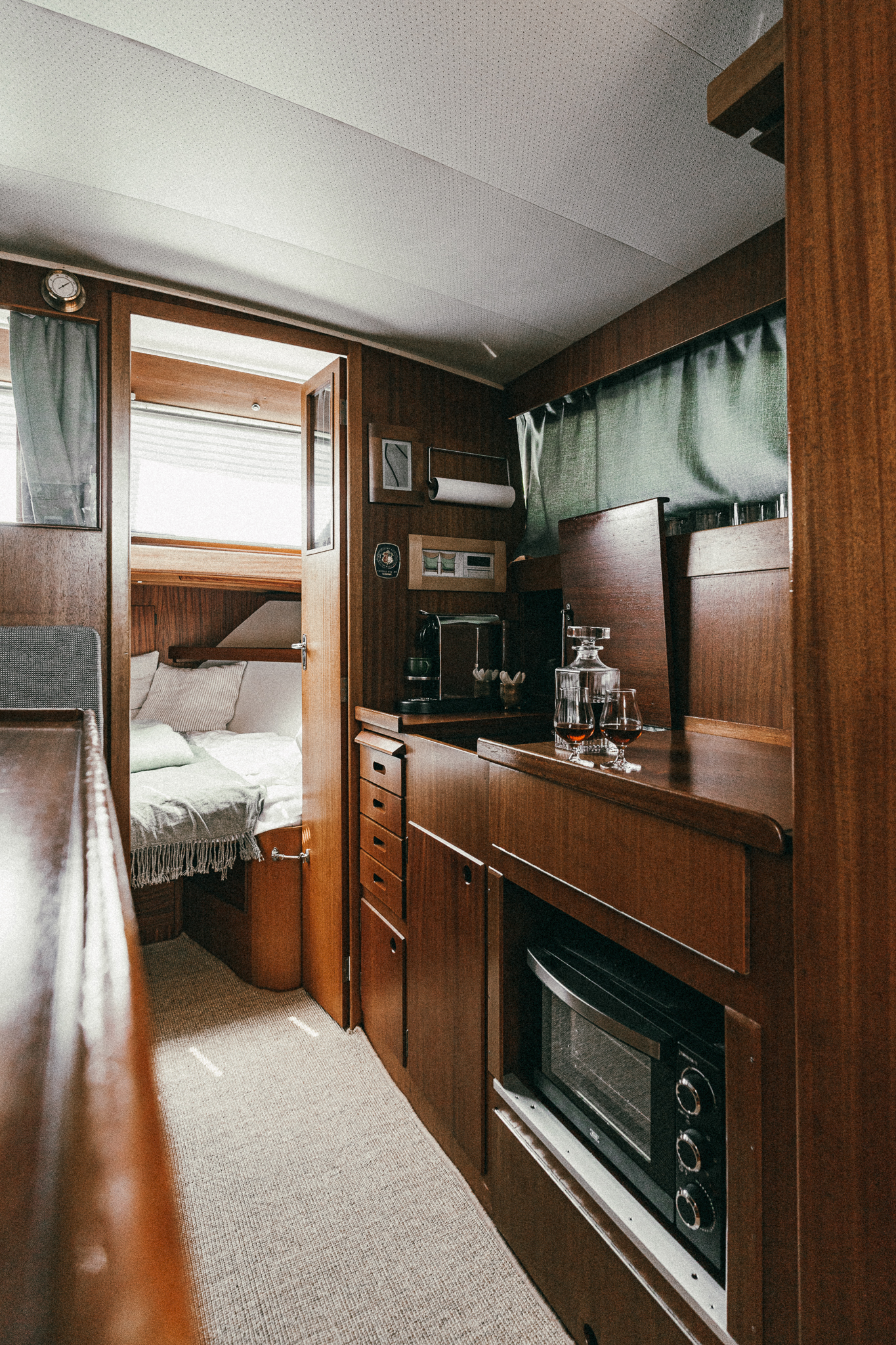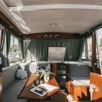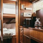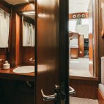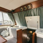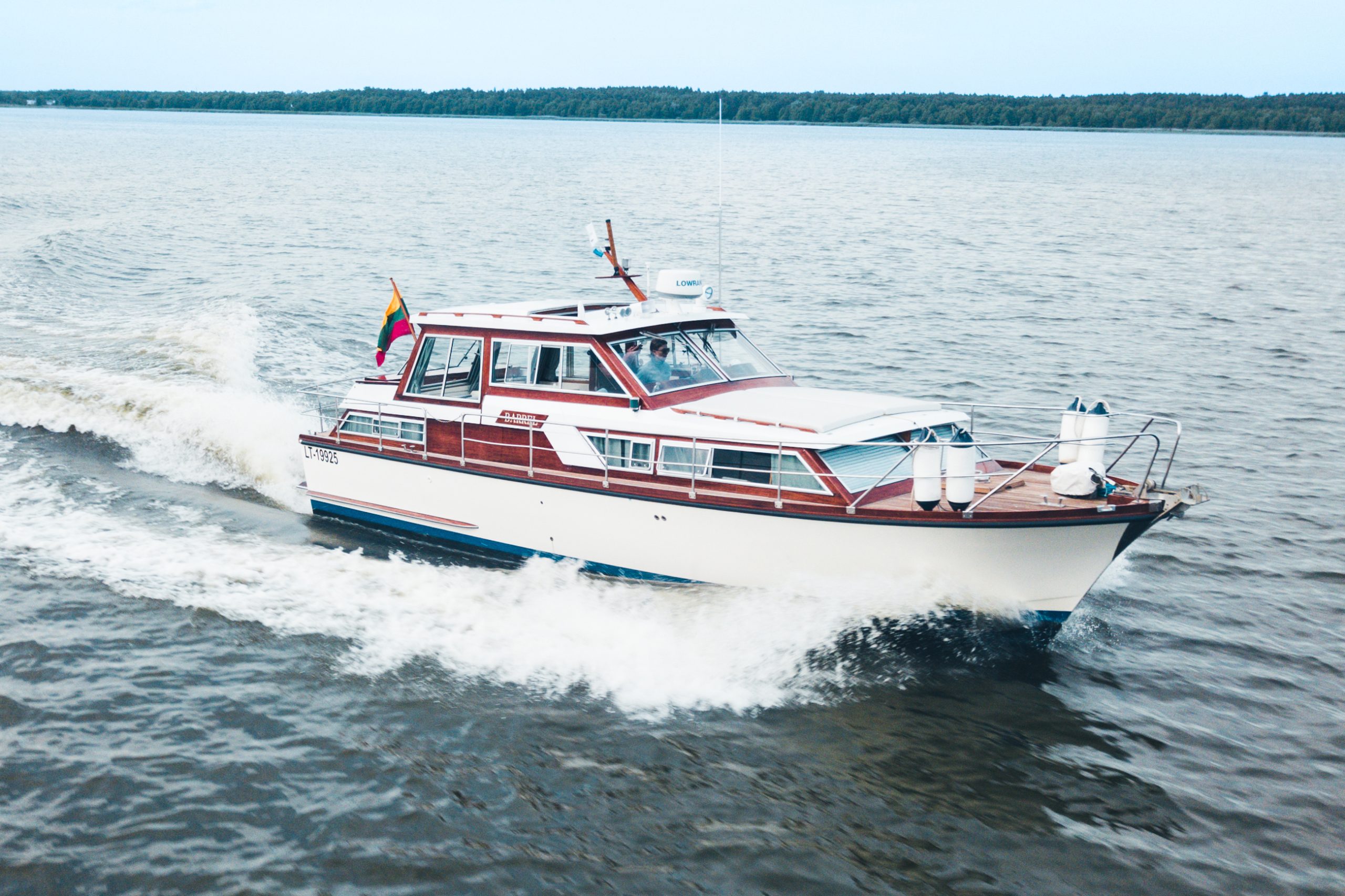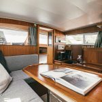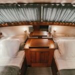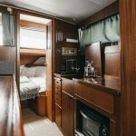 Laive įrengti visi patogumai: virtuvė, miegamieji, wc, garsas ir vaizdas, atskiras papildomas šaldytuvas gėrimams.