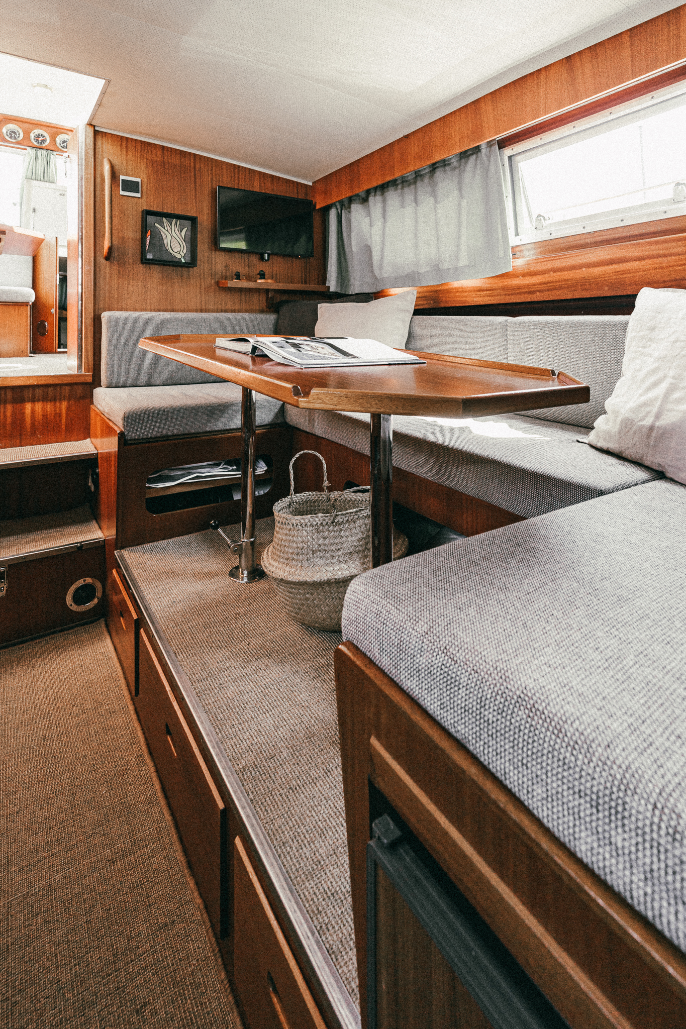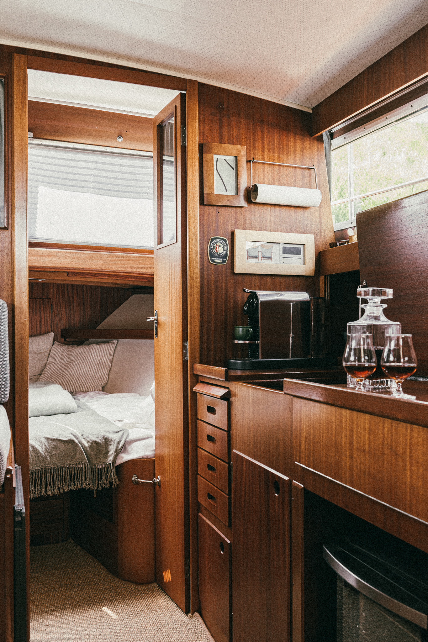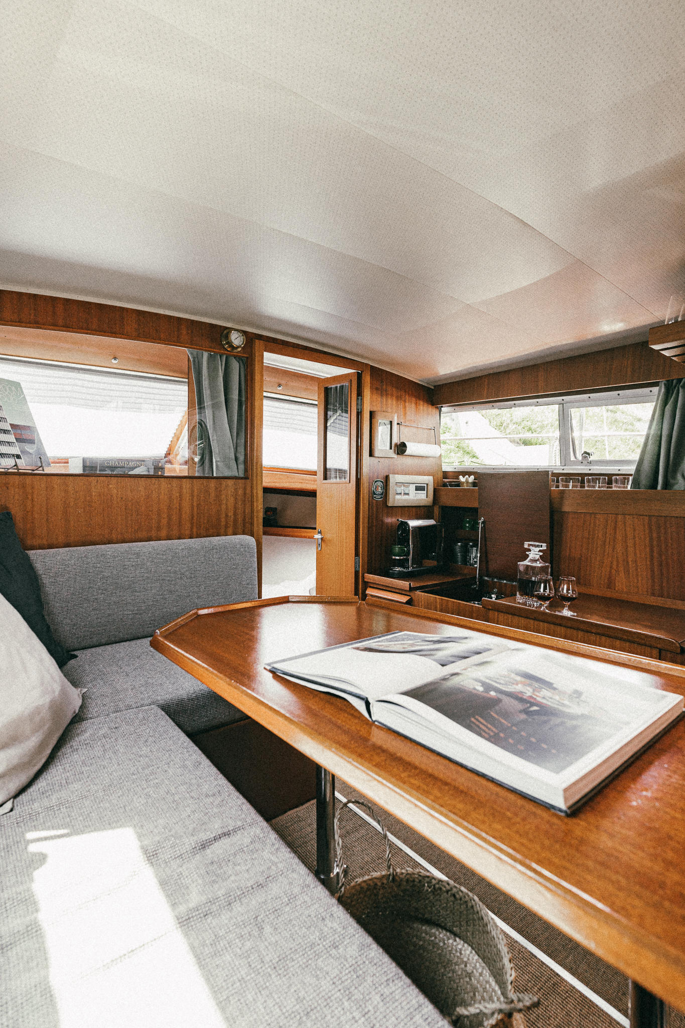 Laive įrengti visi patogumai: virtuvė, miegamieji, wc, garsas ir vaizdas, atskiras papildomas šaldytuvas gėrimams.