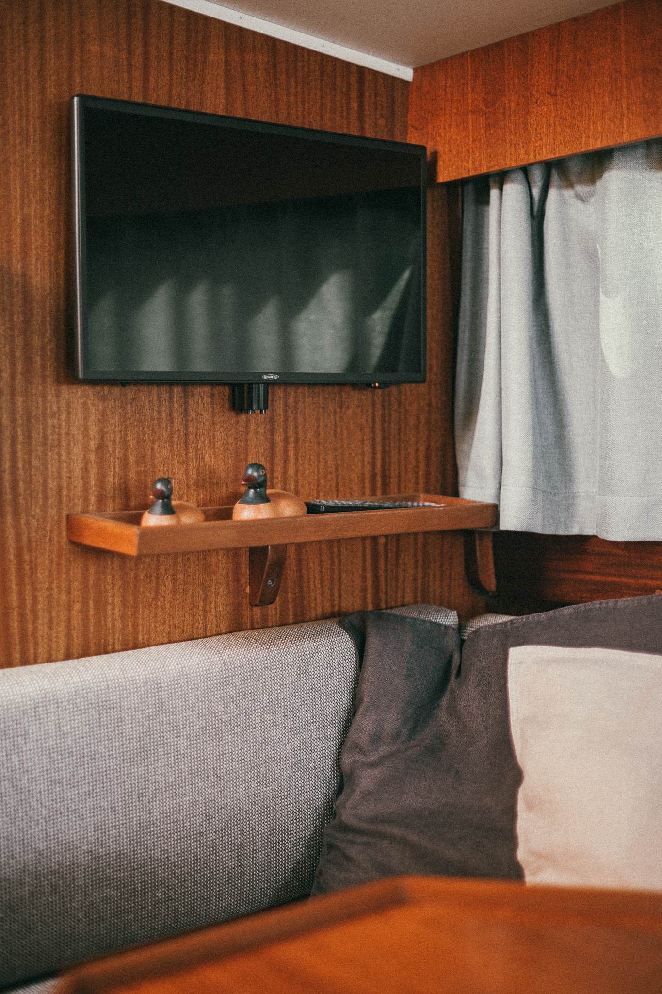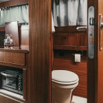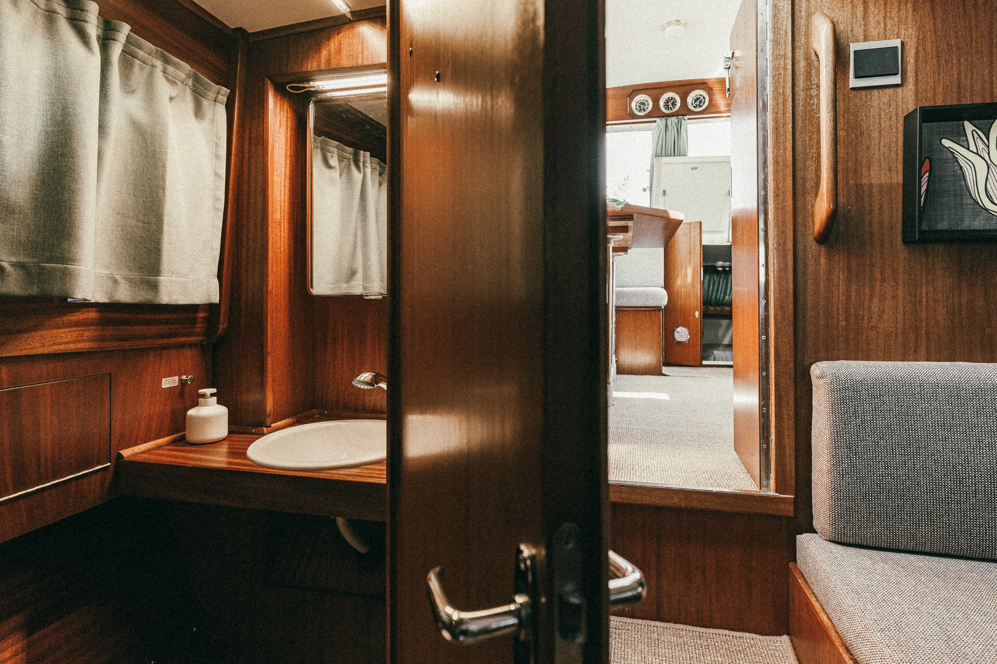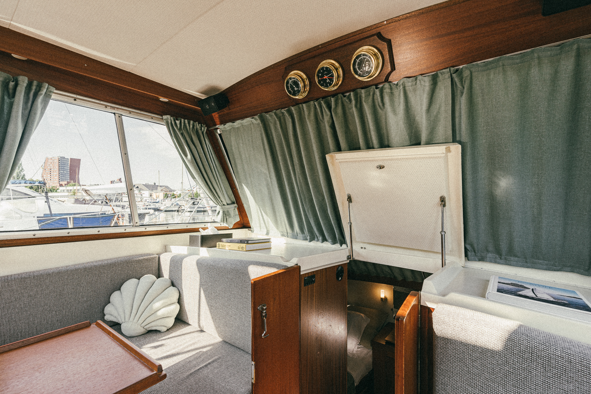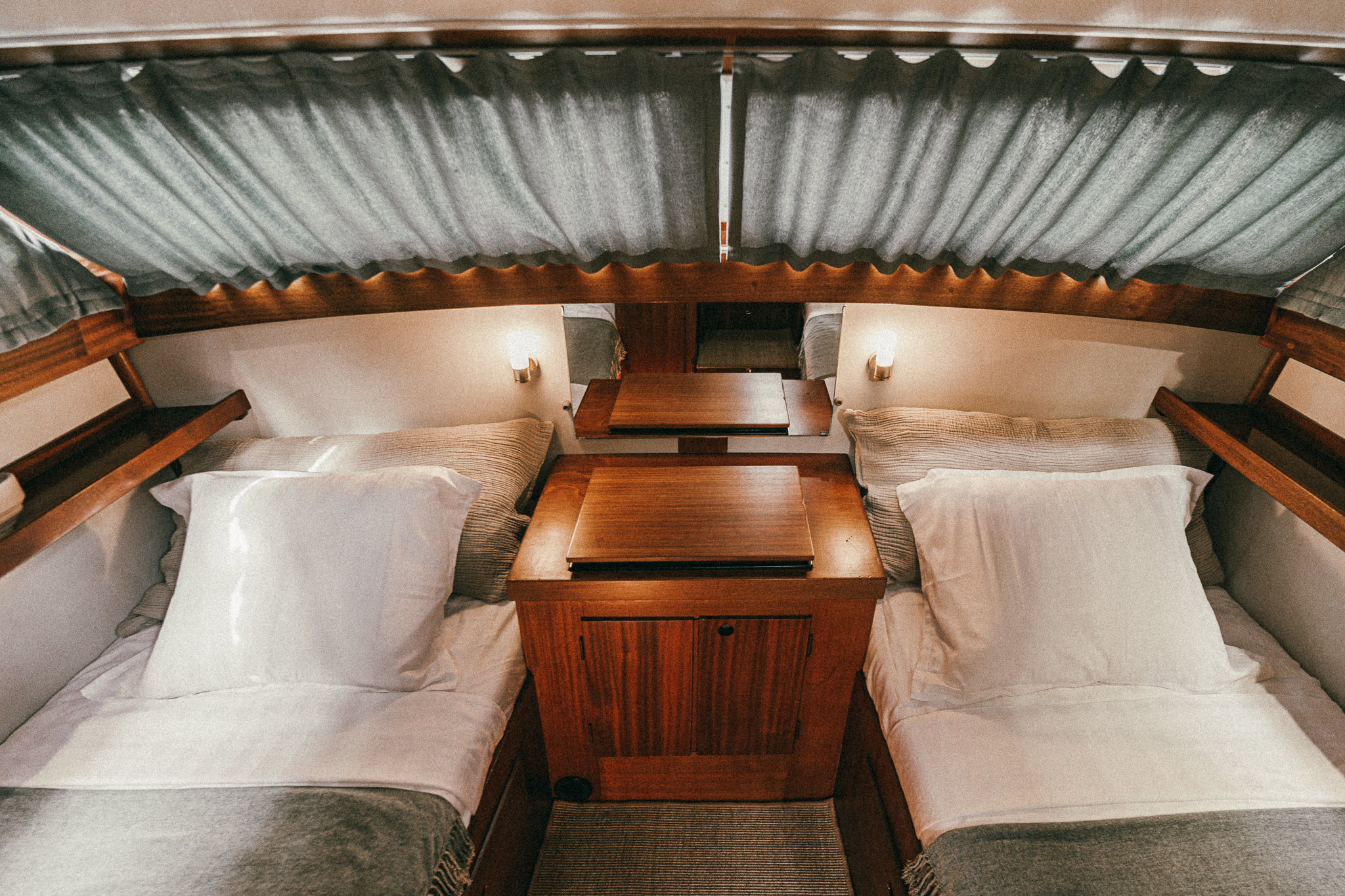 Laive įrengti visi patogumai: virtuvė, miegamieji, wc, garsas ir vaizdas, atskiras papildomas šaldytuvas gėrimams.