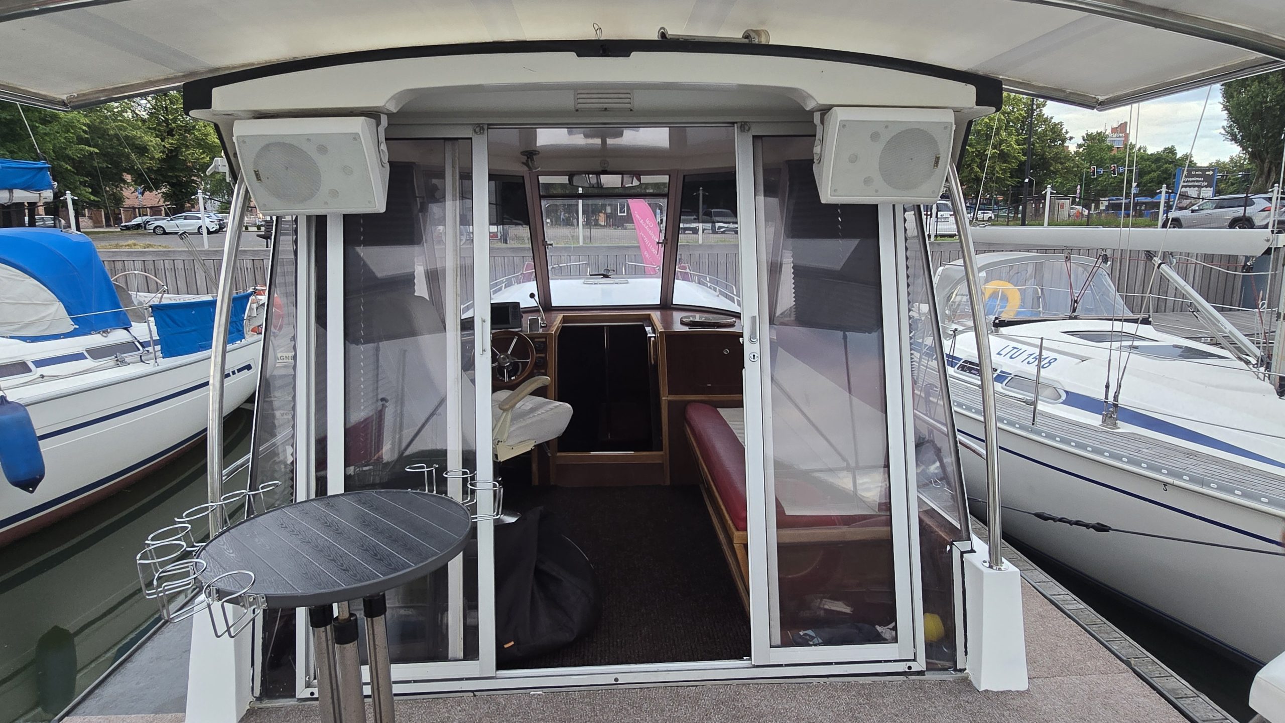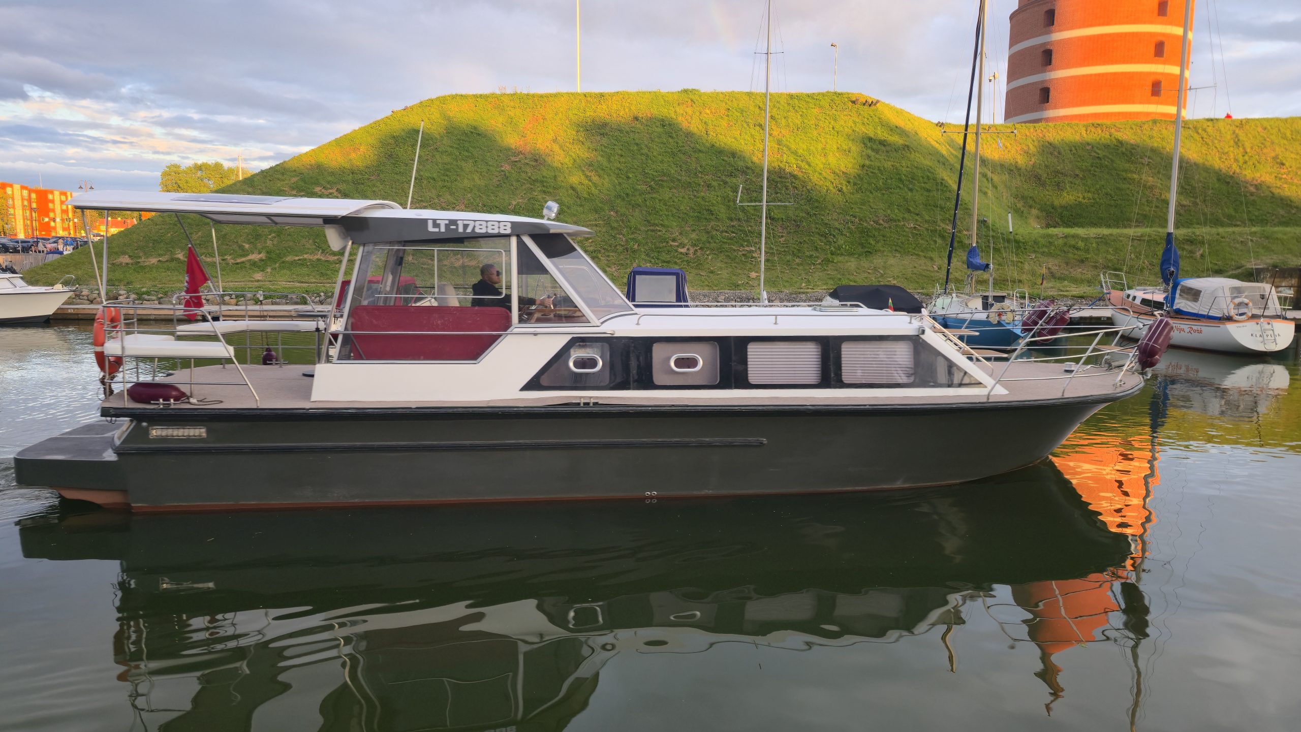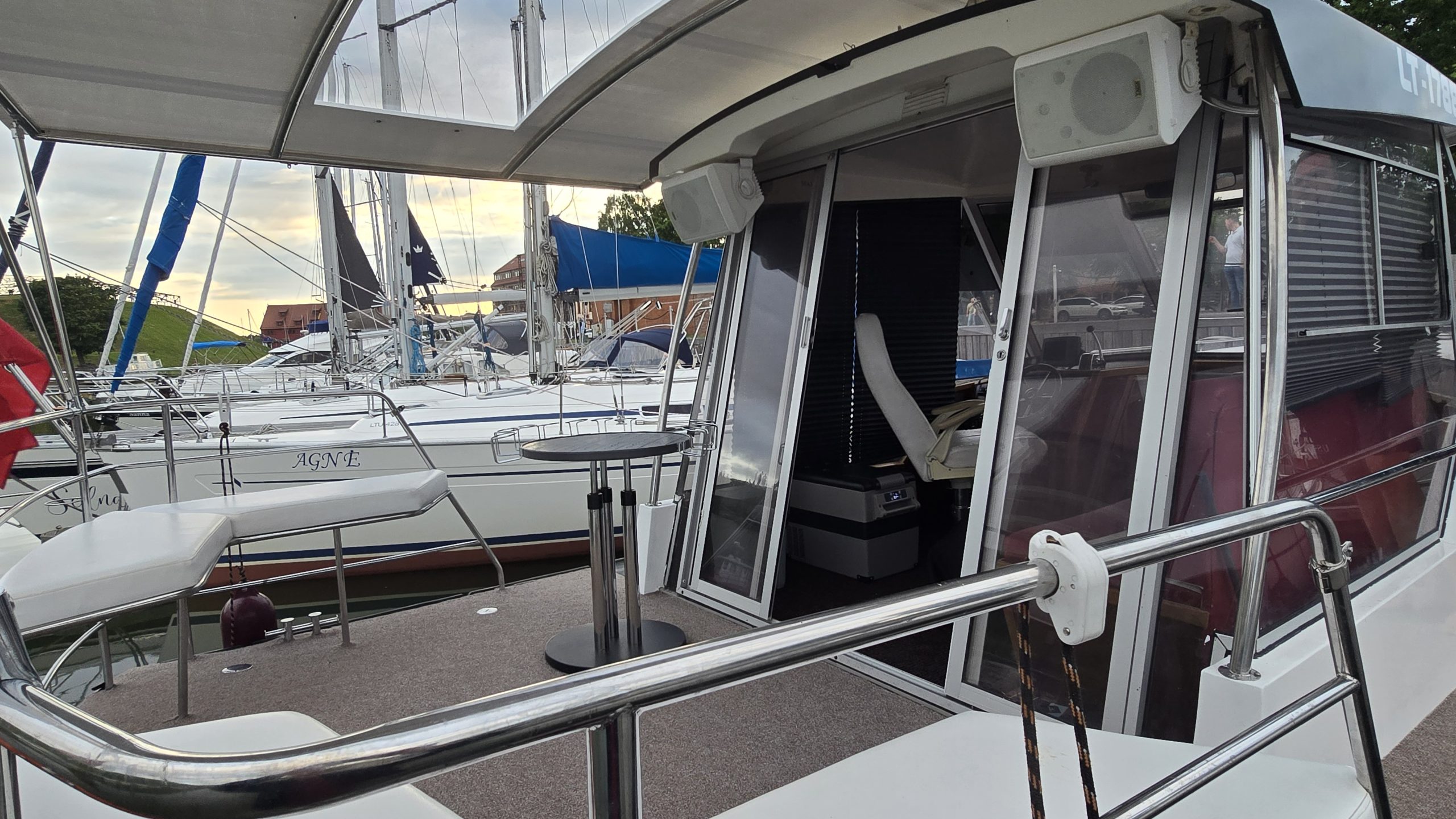 Pramoginio laivo “Cruiser” nuoma Klaipėdoje – plaukimas Kuršių mariose, kolektyvo išvyka laivu, romantiškas pasiplaukiojimas, kelionė laivu į Juodkrantę, Nidą, Dreverną, Mingę. Laivas “Cruiser” yra jaukus laivas, tinkantis įvairioms šventėms: mergvakariams, gimtadieniams, sukaktims ir kitoms šeimos šventėms laive. Laivas itin patogus ir pamėgtas savaitgalio išvykoms ant vandens, trumpiems pasiplaukiojimams link Jūros vartų, fotosesijai laive. Dėl mažos grimzlės pramoginis laivas gali įplaukti į Drevernos uostą, priplaukti arčiau marių kranto.