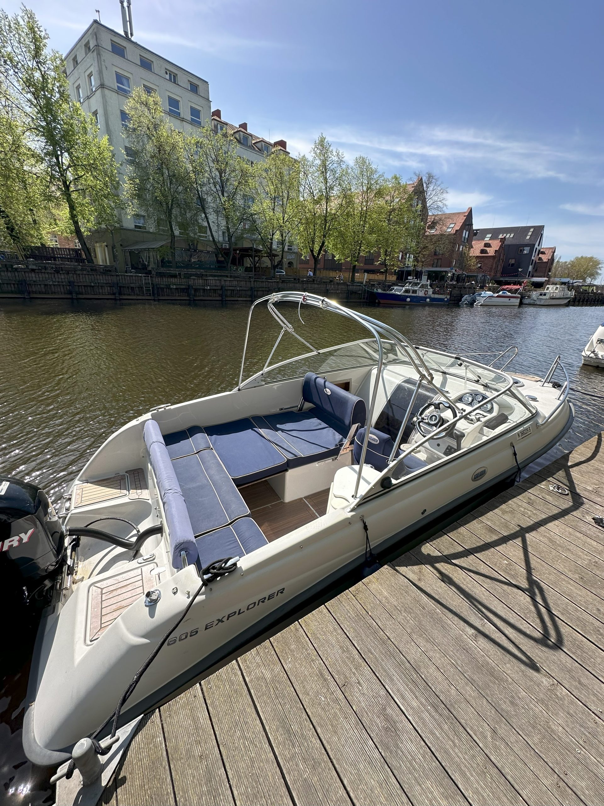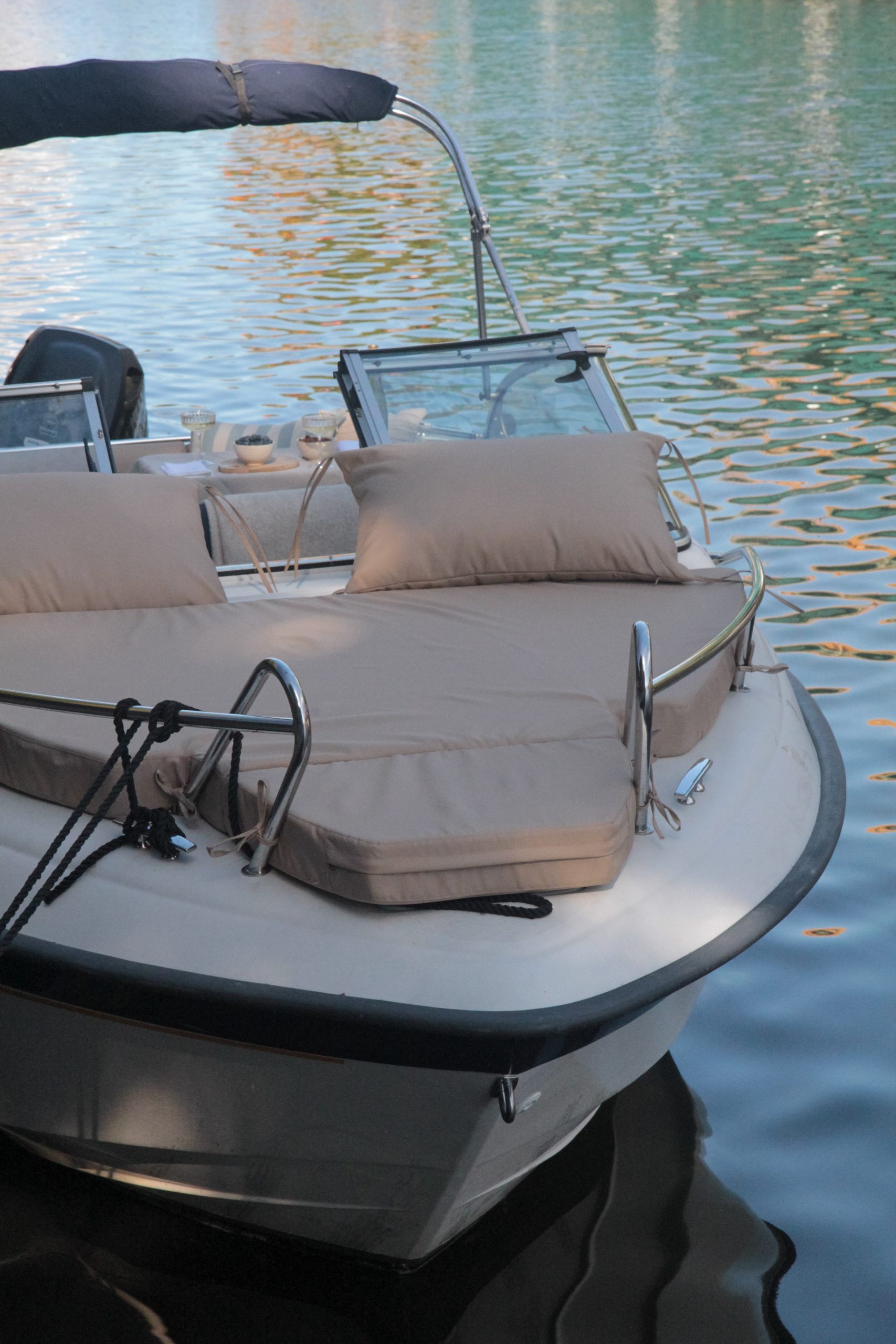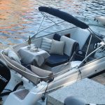 Patogumai: mobilus garso įranga ir šaldytuvas, kriauklė su čiaupu, atviras ir dengtas denis, kajute, dvigubas „sunbed“ (pastovus ant katerio nosies ir transformuojantis denio vidurys)